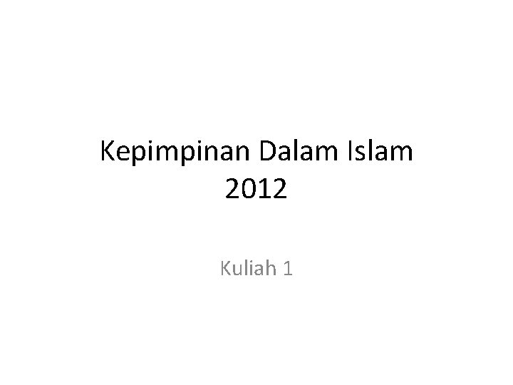 Kepimpinan Dalam Islam 2012 Kuliah 1 Pengenalan Modul