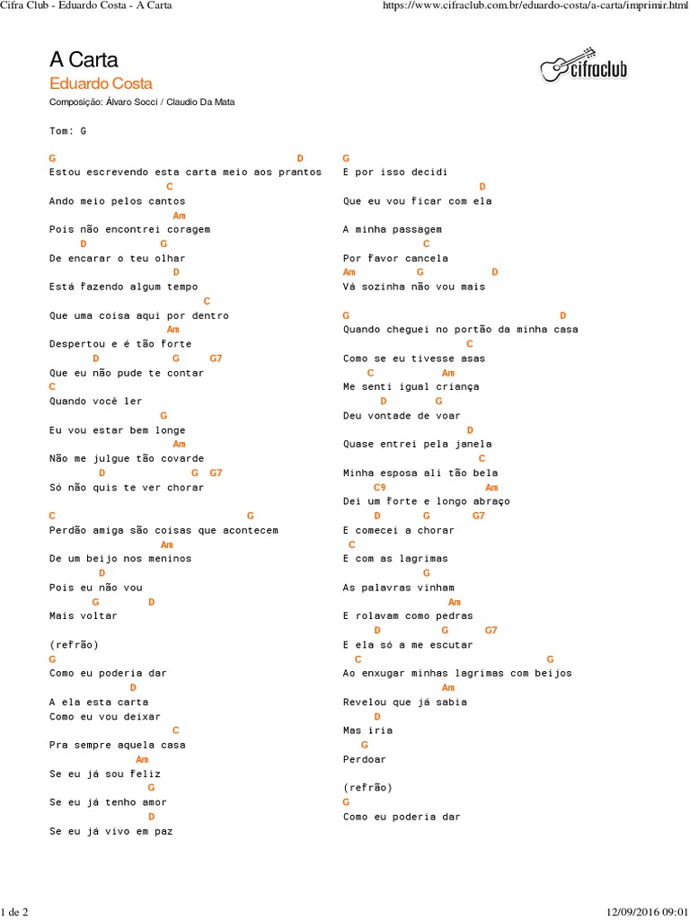 Cifra Club Eduardo Costa A Carta